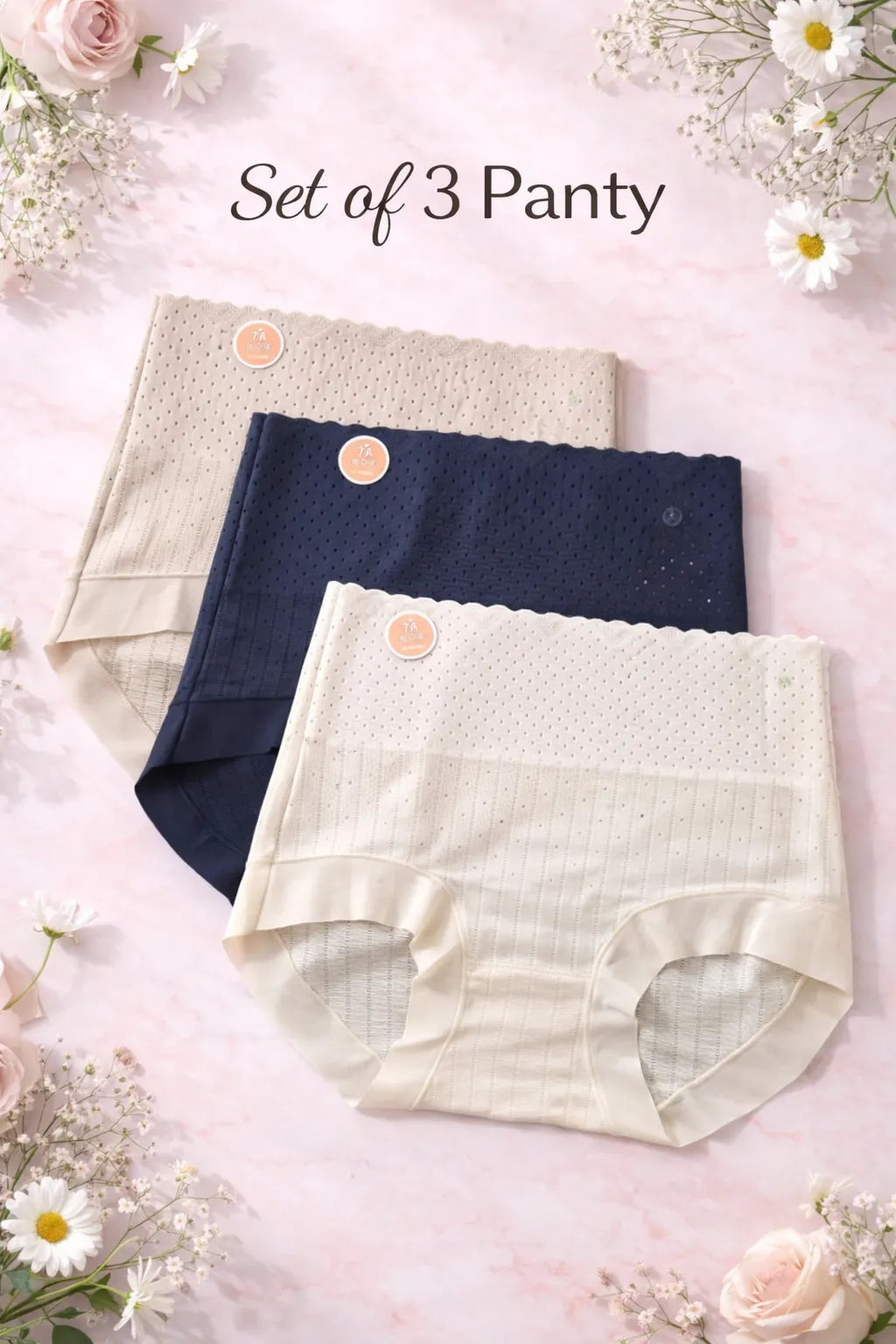 Sateileva Pack of 3 Women’s High-Waisted Seamless Panties – Breathable Mesh Comfort Briefs - M