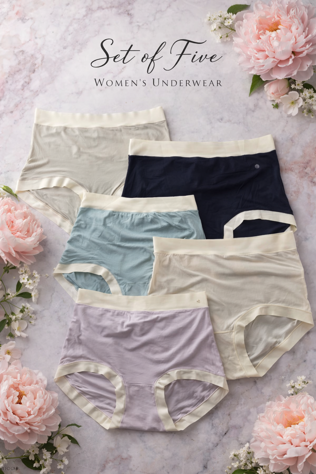 Sateileva Pack of 5 Women's High-Waisted seamless Underwear Breathable Activewear Briefs with Wide Elastic Waistband & Full Coverage – Soft Multipack Panties - L