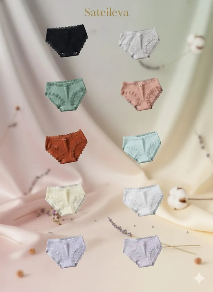 Sateileva Women’s Ribbed Cotton Lace-Trim Panties (Set Of 4, 7 and 10 ) – Soft Breathable Low-Rise Hipster Underwear - Pack of 4 / S